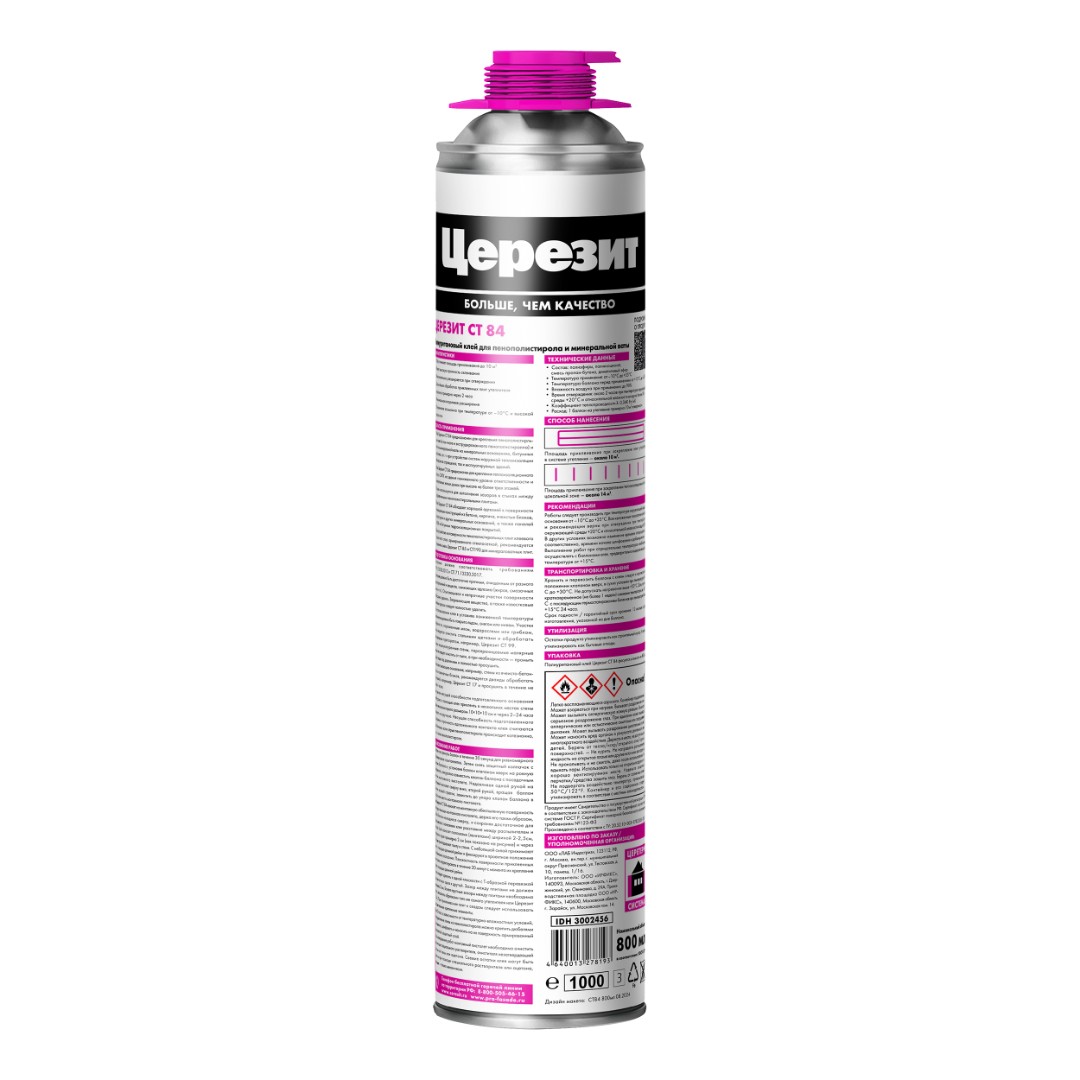 Полиуретановый клей CT 84 Express PLUS предназначен для крепления плит из суспензионного (EPS) и экструзионного (XPS) пенополистирола и минераловатных плит при наружном утеплении фасадов вновь возводимых зданий, а также при реновации существующих систем теплоизоляции.