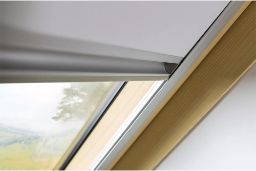 Рулонные шторы для мансардных окон FAKRO ARF даже в самый солнечный день позволят создать в комнате полное затемнение. Боковые направляющие, специальное уплотнение в нижней части алюминиевой планки и слой материала "термо-стоп", которым покрыта штора, препятствуют проникновению света и ограничивают доступ тепла в летний период. Шторы на деревянные и пластиковые мансардные окна изготавливаются из современного материала, который не теряет своих физических свойств и эстетических качеств даже при интенсивном воздействии ультрафиолетовых лучей. Боковые направляющие из алюминия позволяют зафиксировать штору в нужном положении.