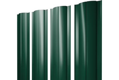 Описание товара: "Штакетник Круглый с прямым резом 0,45 PE-Double RAL 6005 зеленый мох"