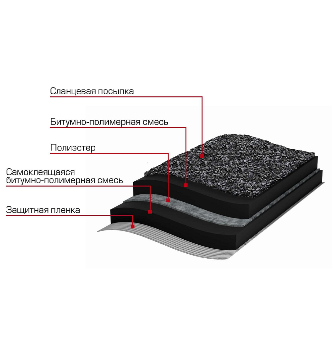 - повышенная защищенность от разрушительного воздействия ультрафиолетового излучения за счет сланцевой посыпки