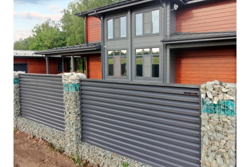 Элементы ограждения собираются как конструктор, что позволяет выполнить монтаж своими силами. Модульный забор под «жалюзи» выглядит объемно и одновременно «легко». Секционные заборы «жалюзи» - отличная альтернатива ограждениям из привычного уже нам металлического штакетника, профилированного листа, дерева. Это новый тренд который легко реализовать с надежным и стабильным производителем Grand Line