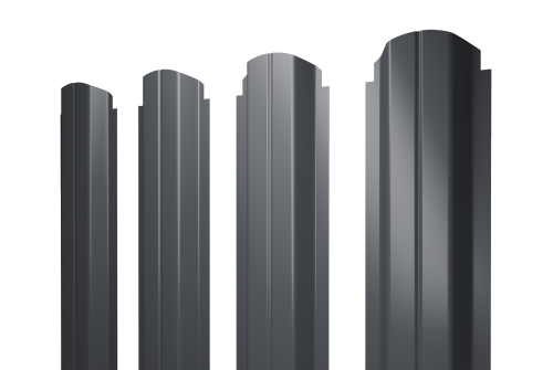 Штакетник П-образный А фигурный 0,5 GreenCoat Pural BT, matt RR 23 темно-серый (RAL 7024 мокрый асфальт) в Судогде