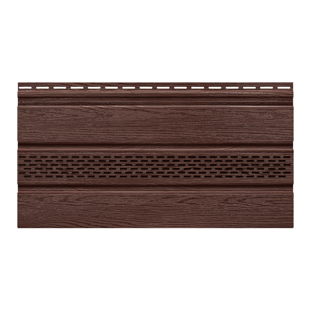 Софит с центральной перфорацией Технониколь - это виниловая панель, которая используется для отделки скатов крыш, карнизов, балконов и других выступающих фасадных элементов. Перфорированная часть этой панели обеспечивает естественное проветривание и предотвращает скопление влаги в пространстве между сайдингом и стеной.Панели не подвержены коррозии и гниению, выдерживают высокую влажность, устойчивы к перепадам температур и ультрафиолетовому излучению, а также изготавливаются из экологически чистых материалов. Простой монтаж и использование стандартных инструментов делают установку софитов легкой и быстрой.