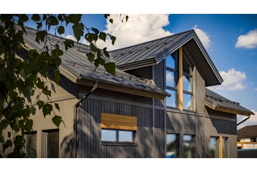 Большая водопропускная способность водостока позволяет собирать осадки с большей поверхности кровли, что приводит к экономии на количестве водосточных труб и сопутствующих элементах.
